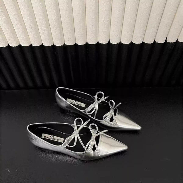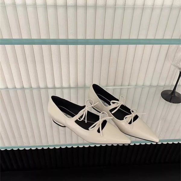 Bow Pointed-Toe Block Heels Pumps