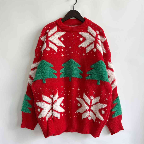 Snowflake Round Neck Long Sleeve Sweater