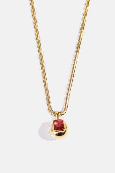 Zircon 18K Gold-Plated Geometrical Pendant Necklace – Available in Olive, Deep Red, Transparent, and Green