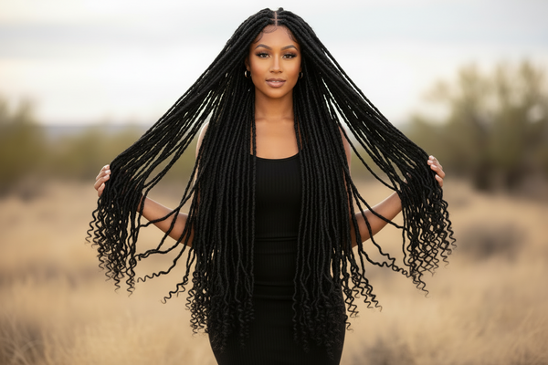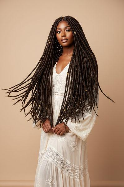 Experience the perfect blend of style and authenticity with our 30-inch Boho Goddess Faux Locs Lace Closure Wig. Meticulously handcrafted with 200% density for a full, voluminous appearance, this wig delivers the coveted bohemian aesthetic without commitment. The 4x4 lace closure provides a seamless, natural-looking hairline while the faux locs offer texture and movement. Ideal for those seeking a protective style that combines fashion-forward design with quality craftsmanship. Transform your look with confidence and versatility.