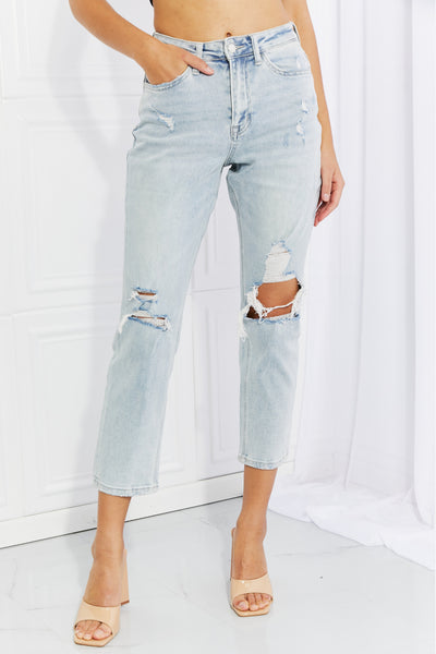 These distressed jeans are everything you've been looking for. They feature the perfect amount of distress with just the right amount of stretch. The cropped length is perfect for showing off your shoes or a favorite pair of boots.